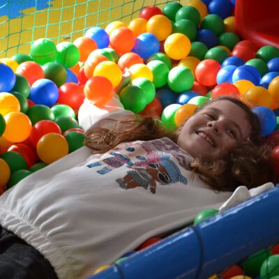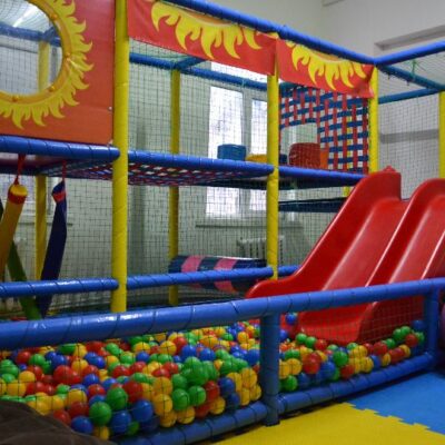 Спортивно — развлекательная площадка с горкой и сухим бассейном, приспособлениями для лазания, полосой препятствий, тоннелем, также есть разнообразные развивающие элементы и игрушки, книги, уголок творчества, которые создают благотворную среду для разностороннего развития детей.